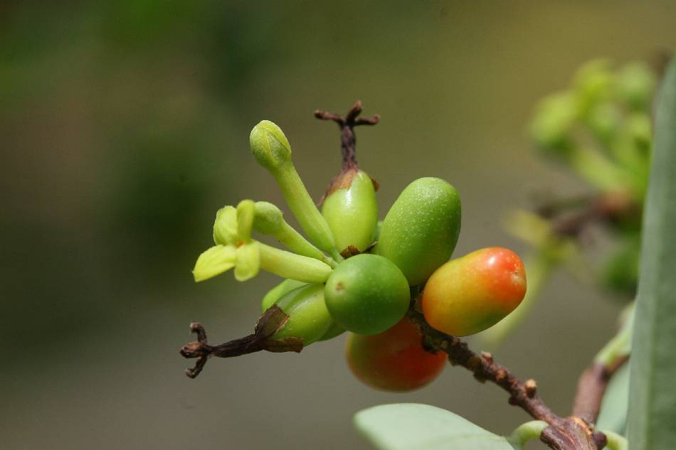 核果漿質,呈卵形,長約 0.6 公分,熟時紅色。