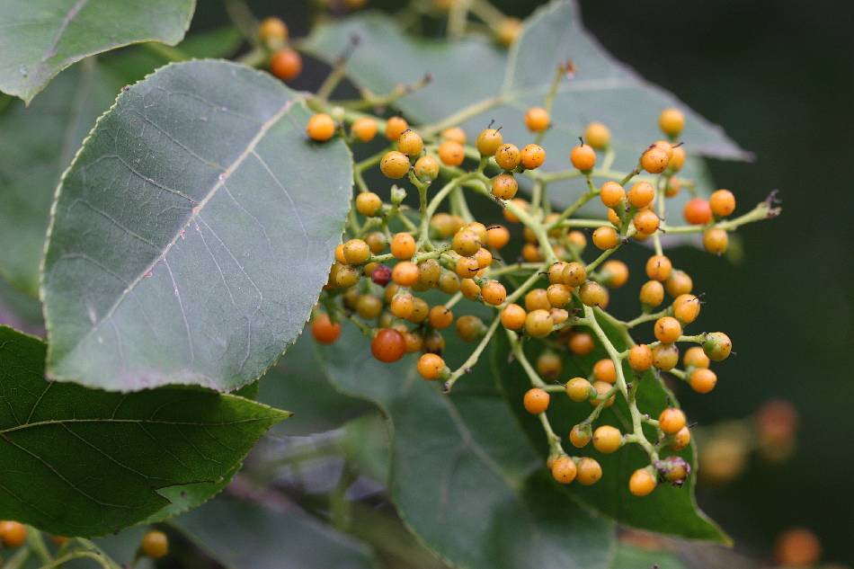 核果球形,徑約 0.5 公分,黃色,熟後呈橘紅色。