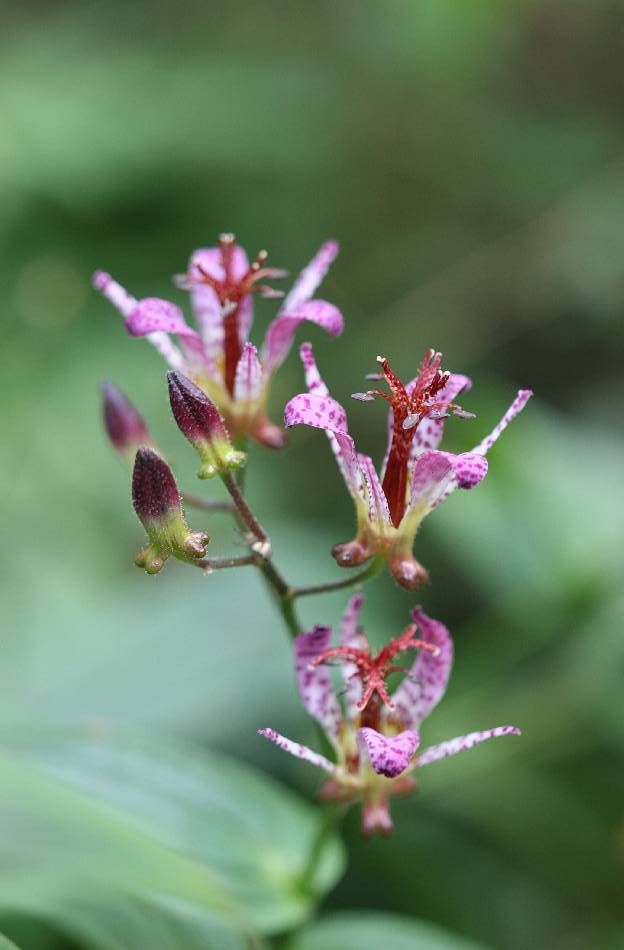 學名: Tricyrtis formosana Baker 科屬: 百合科(Liliaceae)油點草屬 (Tricyrtis) 母語:Hanetotoisimotu施武群(布農) 用途:眼病,將葉搗碎後,取其汁塗於患部(布農) |