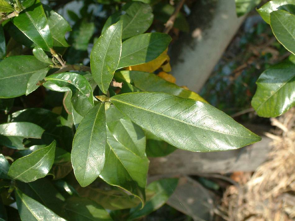 學名: Gardenla jasminoides Ellis 科屬: 茜草科( Rubiaceae )黃梔子屬( Gardenia ) 母語:Ramuurun,Ramyaru施武群(布農) 用途:頭痛,取葉二三枚重複的貼於額部 |