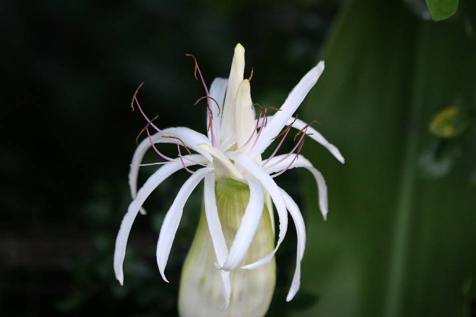 | 花頂生,總苞片 2,繖形花序,由多數 20~50 朵小花組成;花冠白色,十分清香,花被片合生,花筒纖細,伸長,裂片 6;雄蕊 6,著生於花筒喉部,離生;子房下位,花柱下彎,柱頭不明顯 3 裂。 | |