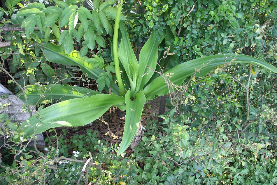 | 葉基部抱生,平行脈,無柄,深綠色的葉呈長線形,葉肉厚而多汁, 葉緣波狀,長 50~80 公分,寬 6~12 公分。 |