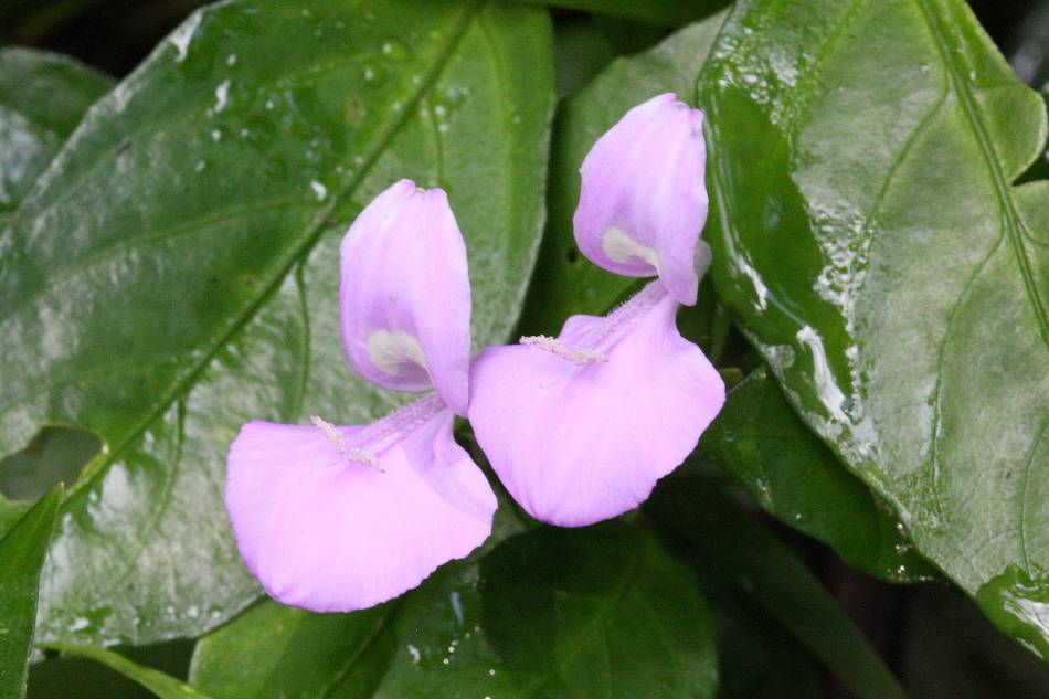花序為頂生或腋生圓錐花叢,由 1~2 朵組成,集生枝頂,呈疏鬆圓錐狀,花軸長可達 40 公分,花梗常和小葉對生;苞片長約 0.5 公分,線狀披針形;花萼深 5 裂,裂片線形,被細柔毛及腺毛;花冠長可達 2 公分,紅紫色,外側被細柔毛,瓣緣 2 唇裂,上唇長約 0.8 公分,寬約 0.7 公分,橢圓形,先端圓形,下唇長約 1.2 公分,寬約 0.5 公分,長橢圓形,淺 3 裂;雄蕊突出冠筒口部外約 0.8 公分;花柱長約 2 公分,疏被硬毛,柱頭 2 裂。花果期周年,夏季較盛。 |