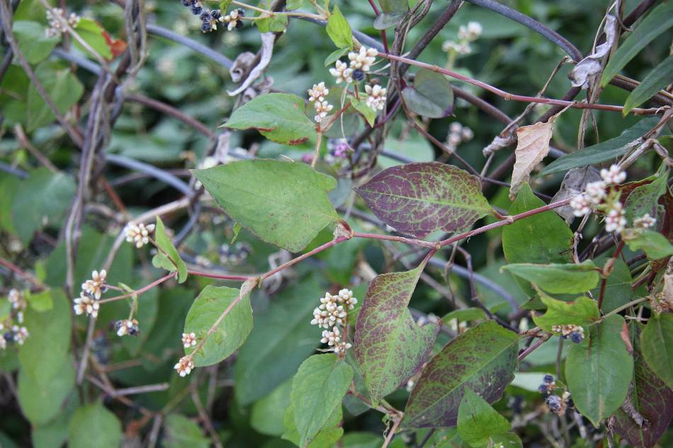 | 單葉互生,紙質,卵形、卵狀長圓形或卵狀三角形,長 5~12 公分,基部截平或近心形,全緣或有小齒,兩面無毛或下面脈上有毛,上面明顯有紫藍色斑塊;葉柄長 1~1.5 公分,有時近頂部葉無柄而抱莖;托葉鞘狀,膜質,抱莖,無毛。 |