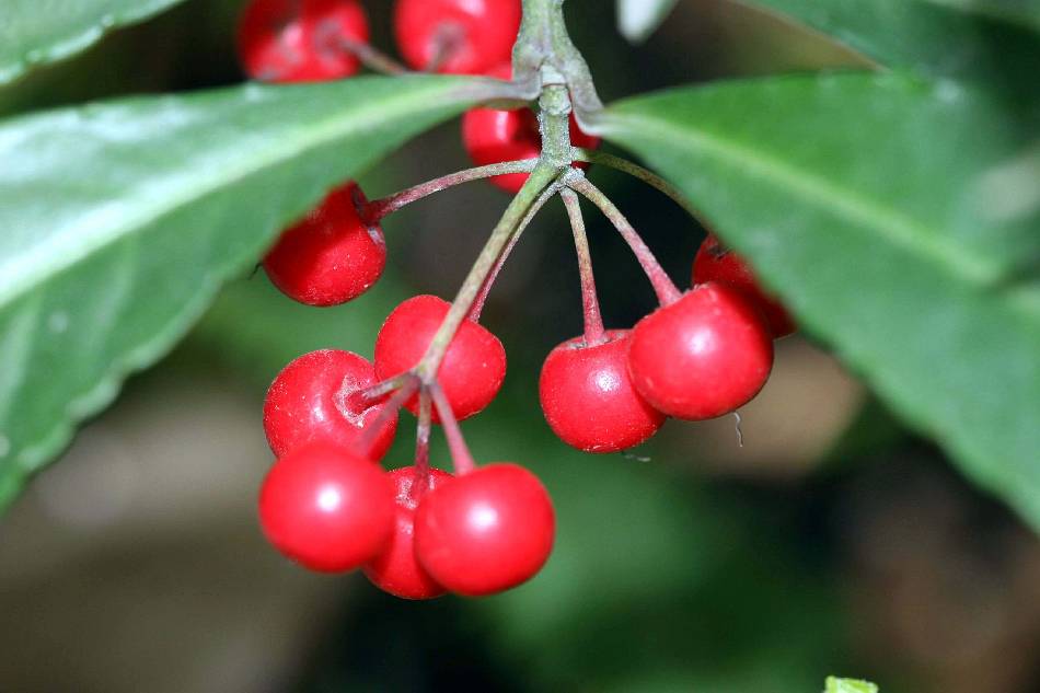 | 果實為核果,球形,徑約 0.5~0.8 公分,成熟時鮮紅色,平滑,有斑點,稍帶肉質。 | |