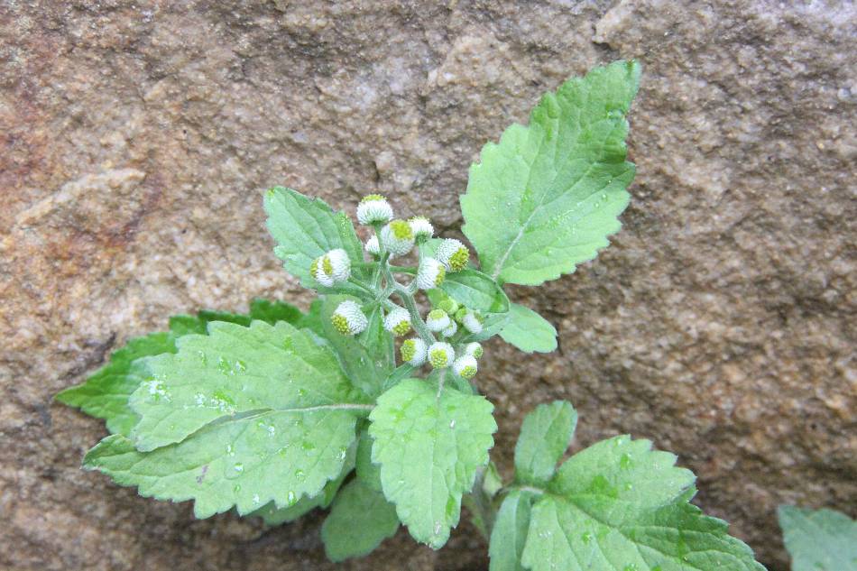 頭狀花序徑 0.3~0.5 公分,球形,呈總狀排列,具長序軸;總苞杯形,總苞片長約 0.08 公分,卵圓形,先端漸尖,乾膜質;舌狀花雌性,7~8 輪,可孕性,花冠長約 0.05 公分,先端 5 齒裂;筒狀花長約 0.1 公分,短筒形,裂片長約 0.1 公分。
