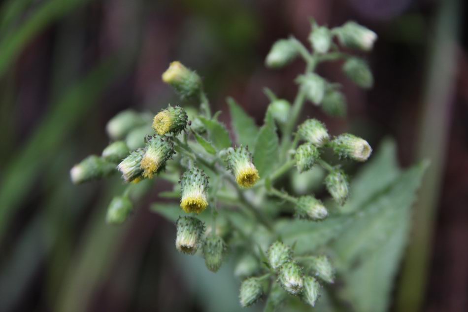 | 頭狀花序多數,徑 1~1.5 公分,無柄或有長 1~1.5 公分的柄,花序柄被柔毛,雜有捲腺毛,腋生和頂生,排列成疏或密的具葉的大圓錐花序;總苞圓柱形或近鐘形,長 0.8~1 公分,與花盤等長或稍長於花盤;總苞片 5~6 層,綠色,草質或乾膜質,外層長圓狀披針形,長 0.2~0.4 公分,頂端鈍或稍尖,背面被短柔毛,雜有腺體,中層和內層近於膜質,線形,長 0.6~1 公分,背面被疏毛,有時僅於脊稜處具腺體;花托平,蜂窩狀,徑 0.25~0.35 公分,流蘇狀;花黃色,雌花多數,花冠細管狀,長 0.6~0.7 公分,頂端 2~3 齒裂,裂片有腺點,少有疏毛。花期 10~12 月。 | |