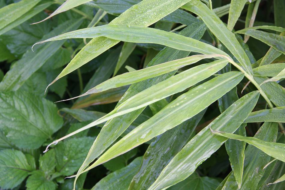 | 葉片線狀披針形至披針形,長 15~25 公分,寬 2~3 公分,暗綠色;基部略狹,先端漸尖,全緣,無毛;葉舌膜質,長 0.3~0.5 公分,光滑,微 2 裂。 |