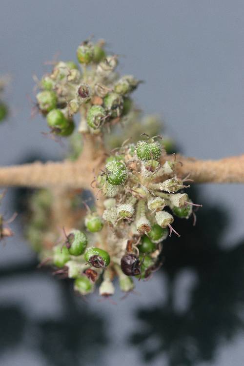 果實小,球形,成熟時黑色。