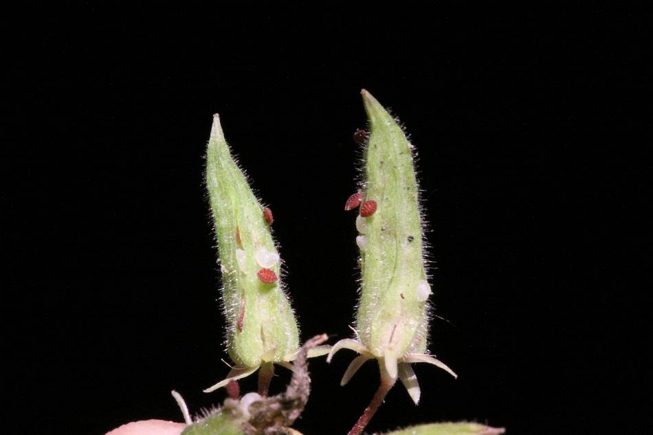 | 果實為蒴果,長條圓錐狀,長 1.5~2.5 公分,5 稜,縱裂;種子多數,扁闊卵形,具有 7~9 條橫皺紋。酢漿草的蒴果成熟時,會像機關槍一樣,用白色的物體(果實的果瓣)將褐色的種子彈出去。 | |