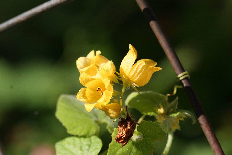 | 單性花,雌雄異株,花黃色,單生至總狀花序;花序腋生,長 10~20 公分,有毛茸;苞片小,長橢圓形,長 0.4~0.5 公分,先端銳尖;雄花:總狀花序,花萼短鐘形,先端 5 裂,綠色,被毛,裂片披針形至卵狀披針形,長 0.5~0.6 公分,寬 0.15~0.25 公分,先端銳尖至漸尖;花冠深五裂,裂片常為花瓣狀,闊披針形至卵狀披針形,長 1~1.5 公分,寬 0.5~0.7 公分,先端略為尾狀;雄蕊 5 枚,長短一致;花藥一室,直線形,花絲離生。雌花單生或成對,花冠 5 深裂,子房球形至卵形,花柱短, 3 裂。 | |