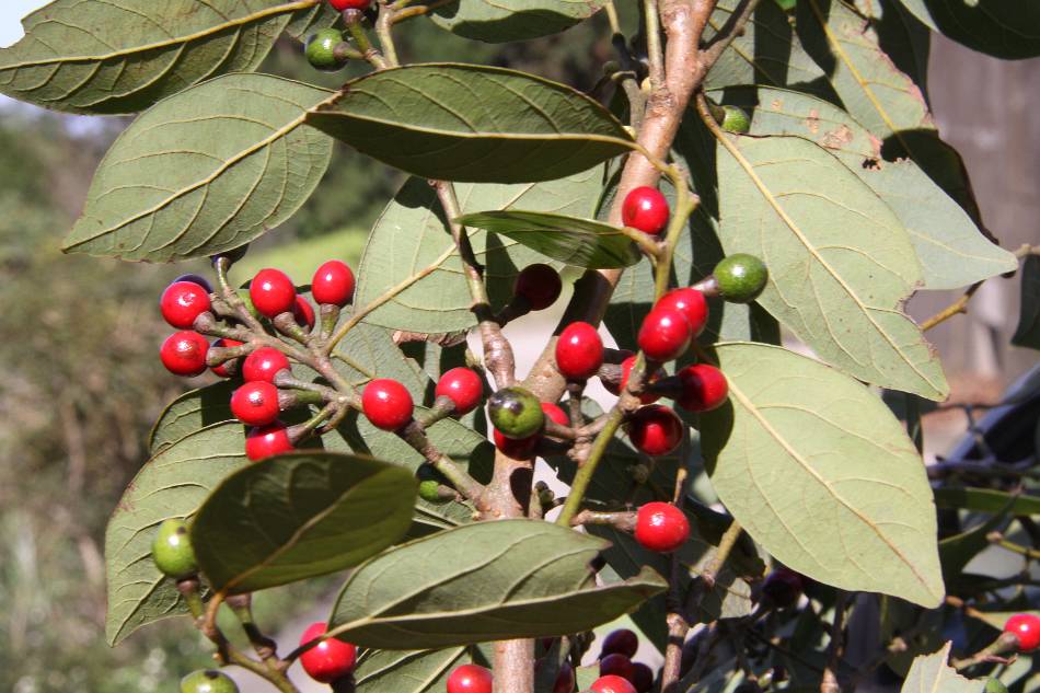 | 果實為核果,徑 0.5~0.7 公分,橢圓狀球形,先端凸突,初綠熟紅;果梗長 0.7~0.8 公分,果托杯狀。花期 6~8 月。果期 9~11 月。 | |
