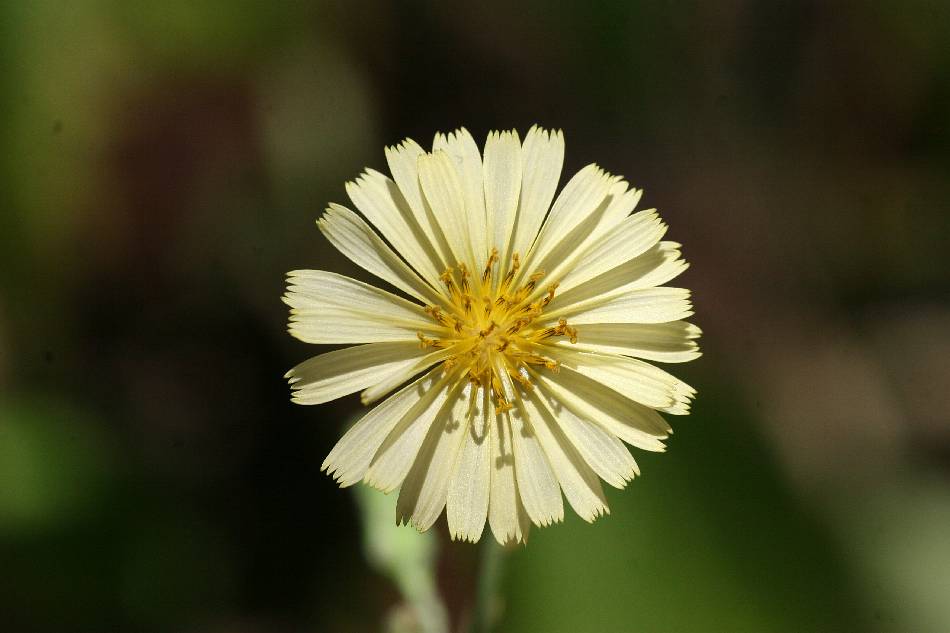 | 頭花徑約 2 公分,多數在莖頂排列成寬或狹圓錐狀,總苞片四層,長 1.2~1.5 公分,外層最短,花全為舌狀花,淡黃或白色或稍帶紫色。 | |