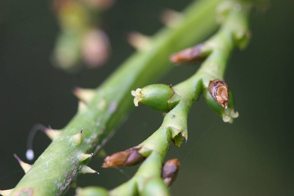 其他:多年生有刺木質藤本植物,莖長達 200 公尺以上,粗約 3 公分。雌花雌花