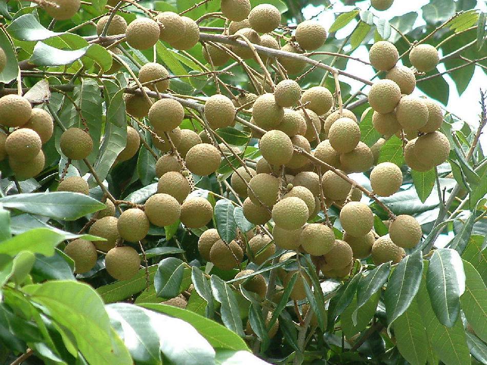 | 核果球形,不開裂,外皮黃褐色,粗糙,鮮假種皮白色透明,肉質,多汁,甘甜,種子球形,黑褐色,光亮,物美可食。果實7~8月成熟。 |